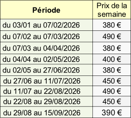 Taxe de séjour en sus 1,20€par adulte et par jour